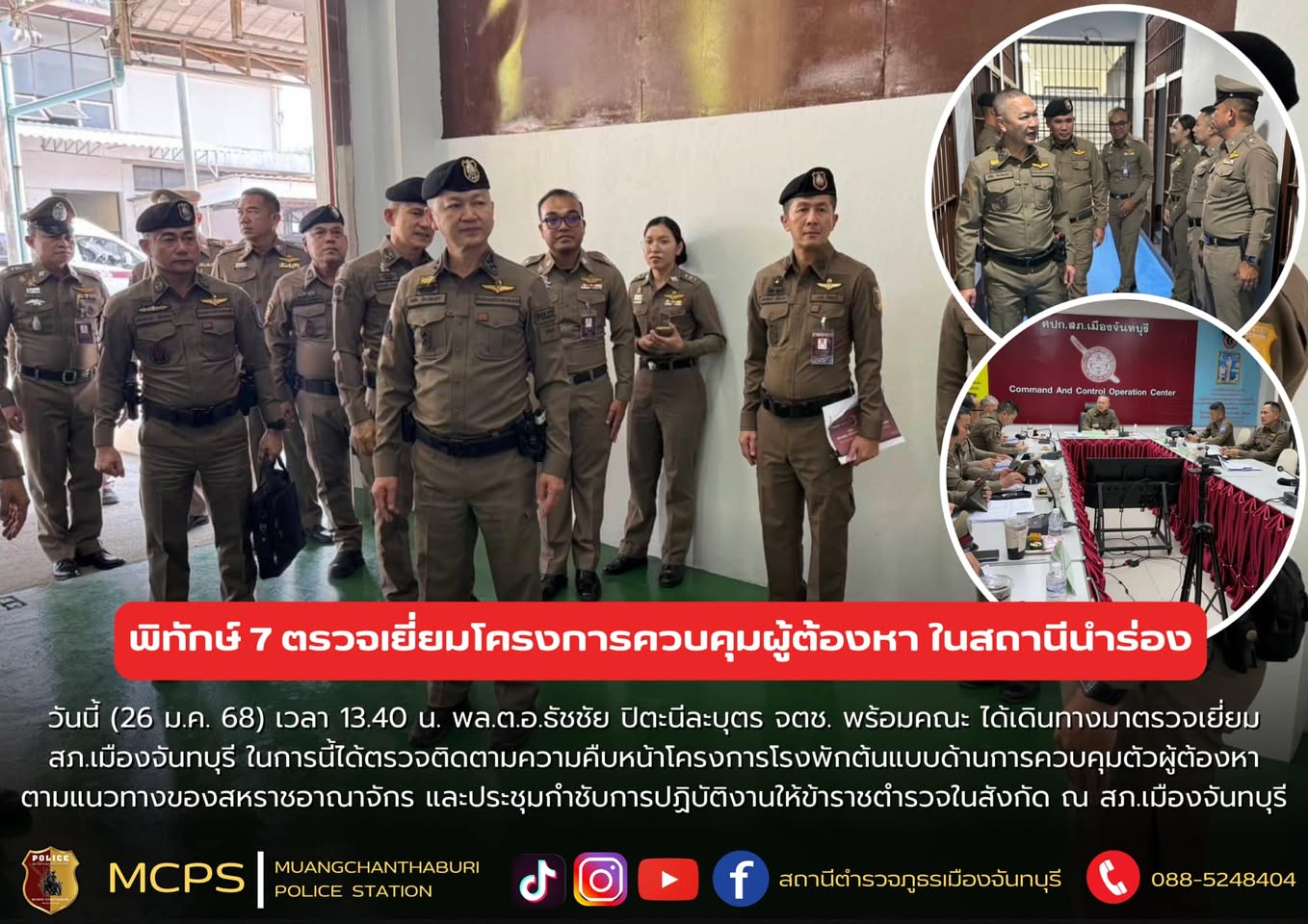วันนี้ (26 ม.ค.68) เวลาประมาณ 13:40 น. พล.ต.อ.ธัชชัย ปิตะนีละบุตร จตช. พร้อมด้วย พล.ต.ต.พงษ์สยาม มี