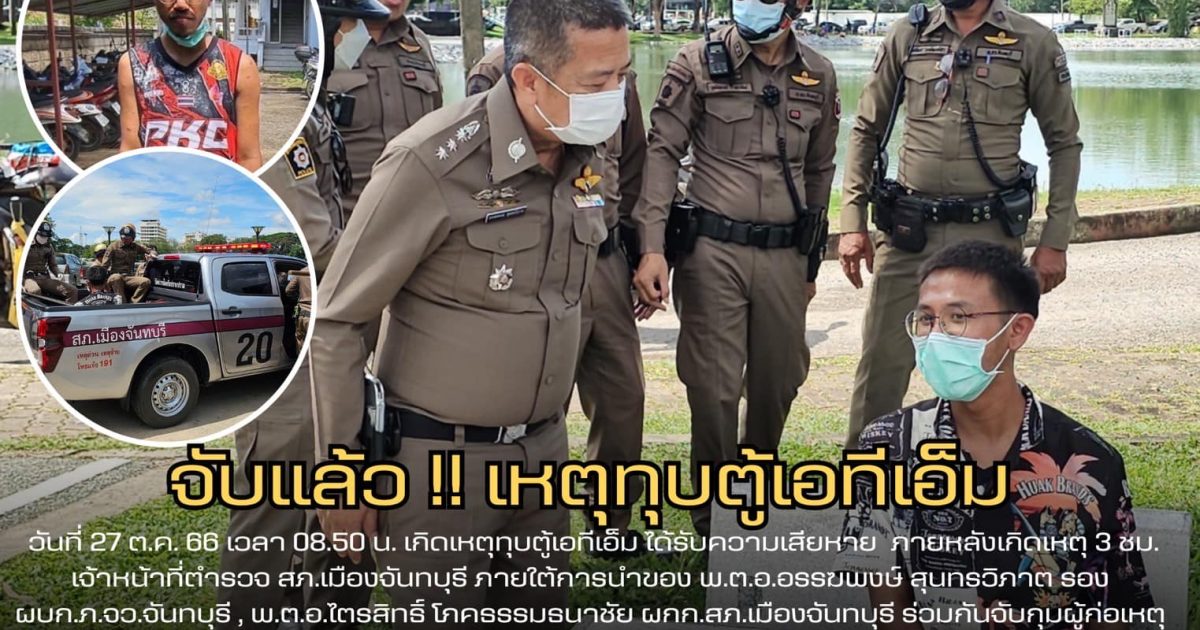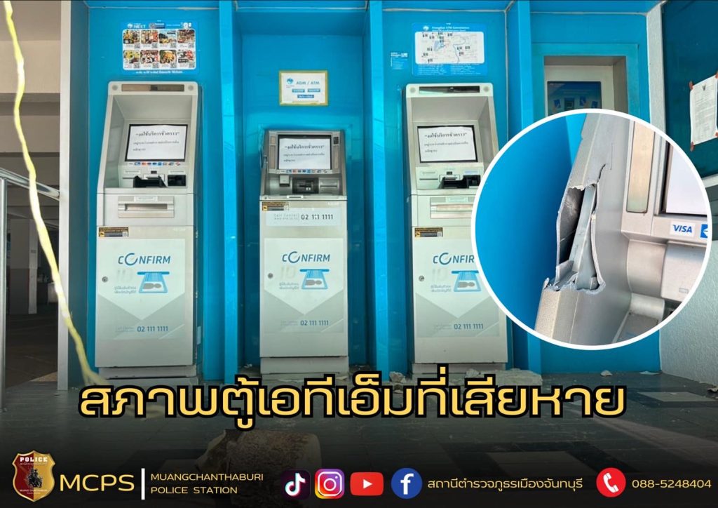 วันที่ 27 ต.ค.66 เวลา 08.50 น.ว่าที่ พ.ต.ต.มนตรี ธัญธรัตน์ พงส.สภ.เมืองจันทบุรี ได้รับแจ้งจากศูนย์วิทยุ สภ.เมืองจันทบุรี ว่ามีเหตุคนร้ายไม่ทราบว่าเป็นผู้ใด ก่อเหตุทำลายทรัพย์สินเป็นตู้เอทีเอ็ม ของธนาคารกรุงไทย และยูโอบี ได้รับความเสียหายจำนวนหลายตู้ จึงได้รายงานผู้บังคับบัญชาและรีบเดินทางตรวจที่เกิดเหตุเหตุ เมื่อไปถึง พบ
