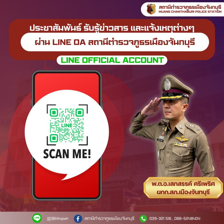 ประชาสัมพันธ์ รับรู้ข่าวสาร และแจ้งเหตุต่างๆ ผ่าน LINE OA ของ สถานีตำรวจภูธรเมืองจันทบุรี FacebookFa