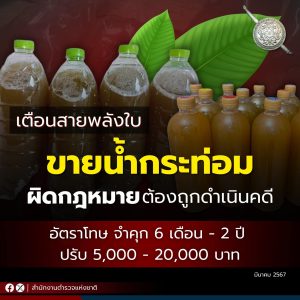 สภ.เมืองจันทบุรี ขอเตือนสายพลังใบ ขาย “น้ำกระท่อม” ผิดกฎหมาย ต้องถูกดำเนินคดี มีอัตราโทษจำคุก 6 เดือ