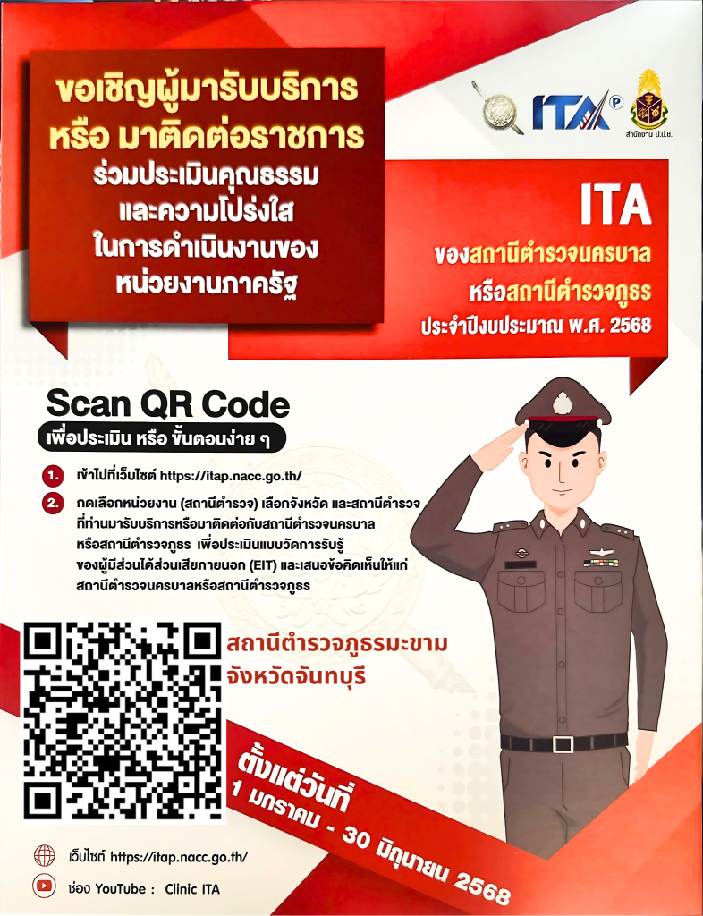 สถานีตำรวจภูธรเมืองจันทบุรี จังหวัดจันทบุรีขอเชิญชวน ผู้มารับบริการ / มาติดต่อ สถานีตำรวจ ร่วมจัดทำ